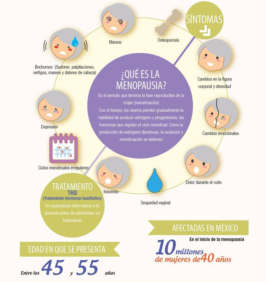La disminución en las hormonas del ovario produce sequedad vaginal, ardor, comezón, dolor, dificultades para tener relaciones sexuales, así como aumento en la frecuencia de infecciones urinarias y vaginales.
